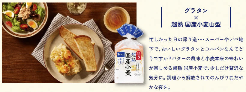 시키시마제빵은 생활 양식의 변화를 고려하여 저녁식사에 빵을 도입하는 ‘요루빵(ヨルパン)’의 제안에 주력할 예정이다. 맞벌이 세대가 증가하는 가운데, 손쉽게 준비할 수 있는 저녁 식사의 새로운 선택지로 반찬에 빵을 곁들이는 것만으로도 저녁 식사가 완성하는 간편 메뉴 소개를 점포나 자사 사이트에서 진행하고 있다.