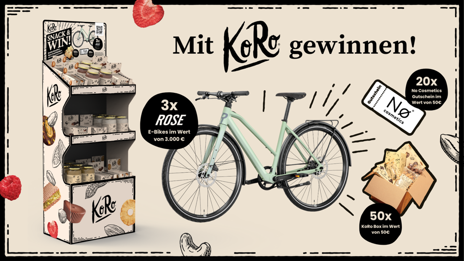 소비자는 KoRo 제품 구매 후 영수증을 업로드하는 방식으로 경품 이벤트에 참여할 수 있다. 경품으로는 E-바이크, 화장품 바우처, KoRo 스낵 박스 등 소비자 선호도가 높은 상품이 제공된다.