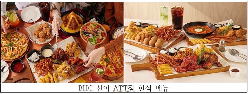 신이 ATT점(信義ATT店)은 단순한 식사 공간을 넘어, Z세대(Gen Z)를 주요 타깃으로 한 ‘소셜형 레스토랑’을 콘셉트로 운영된다. 이를 위해 기존 매장과 차별화된 총 26종의 신규 한식 메뉴를 도입했다. 대표 메뉴인 ‘뿌링클(현지명 별별치킨)’을 중심으로, 여러 명이 함께 나눠 먹을 수 있는 ‘BHC 치킨 파티 플래터’를 출시해 그룹 소비를 강화했다. 이와 함께 로제 떡볶이, 옥수수 치즈 김치전 등 현지 젊은 층 선호도가 높은 퓨전 메뉴를 추가해 메뉴 경쟁력을 높였다.
