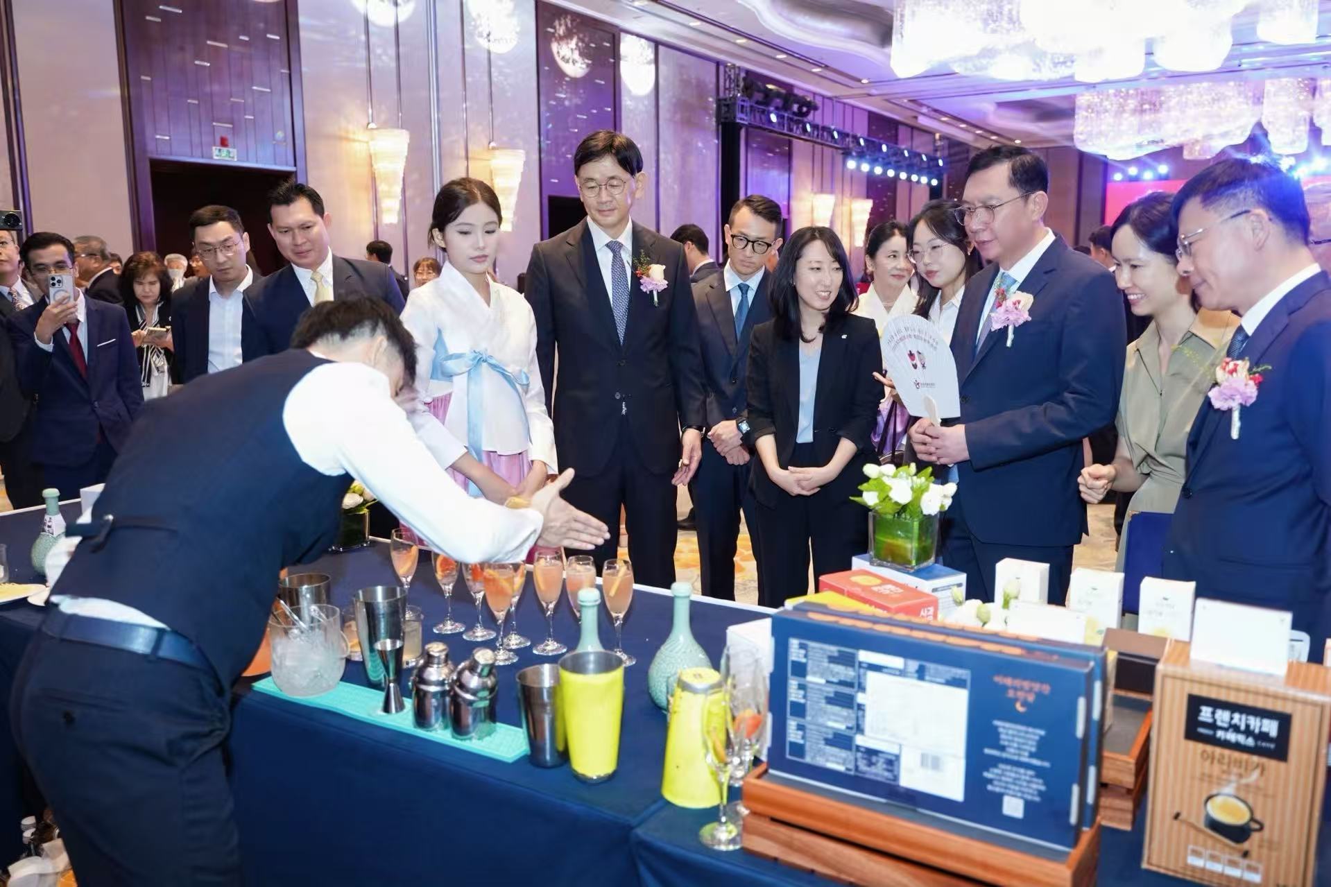한편 주칭다오 총영사관이 주최한 국경절 리셉션에서도 K-푸드가 대한민국의 주요 홍보 품목으로 소개됐다. 산둥성 외국사무판공실 부주임 린하이빈(林海滨), 칭다오시 인민대표회의 리홍빙(李宏炳) 부주임을 비롯한 주요 인사가 참석한 가운데, 칭다오맥주·마오타이 등 중국 유명 브랜드와 협업한 바텐더 샤오베이가 한국 전통주 이강주 칵테일을 선보이자 이강주의 차별화된 풍미에 대한 호평이 쏟아지며 구매처를 묻는 문의가 이어졌다.