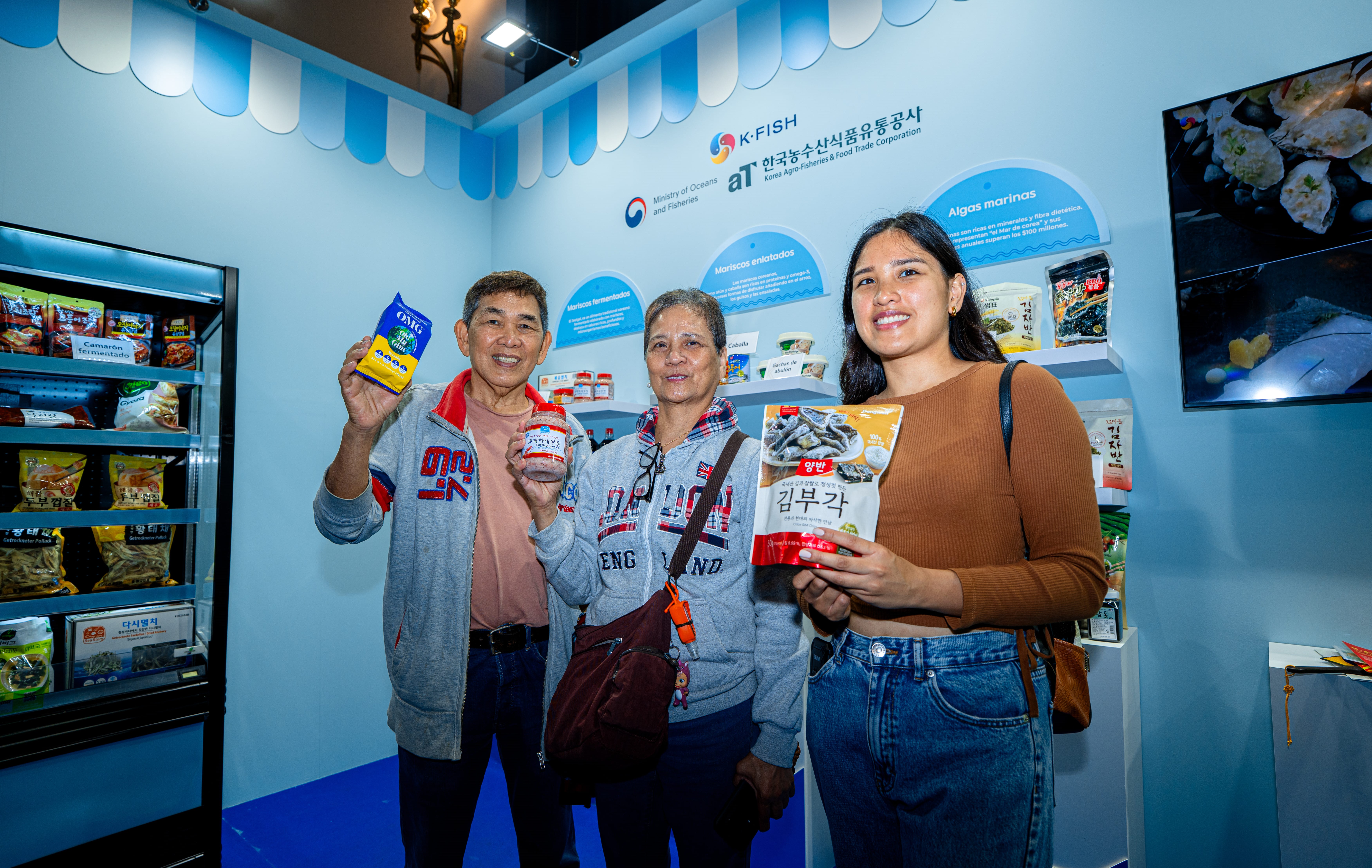 aT는 스페인 마드리드 도심의 대표적인 문화예술 공연장인 ‘아르테스 예술센터’에 수산식품 홍보관을 마련했다. 매운맛 김, 다시마 부각, 오징어 스낵, 전복죽 등 다양한 K-씨푸드를 직접 맛볼 수 있는 전시·체험 프로그램을 운영해 현지 관람객들의 큰 호응을 얻었다. 특히 관람객들은 한국산 김과 참치로 참치김밥을 직접 만들어보며, 한국산 수산물의 우수한 맛과 품질을 경험했다.