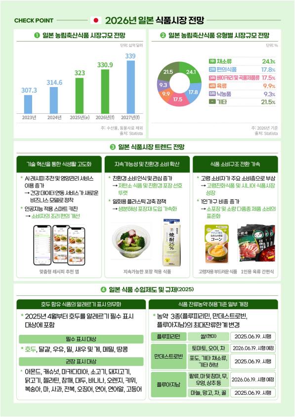 '일본 2025년 식품시장 트렌드 및 2026 전망' 저작물은 "공공누리 2유형 출처표시 + 상업적 이용금지" 조건에 따라 이용할 수 있습니다.
