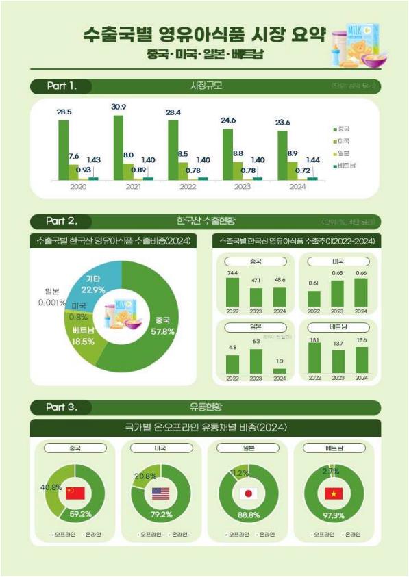 '2025년 농식품 해외시장 품목조사-영유아식품 (중국·미국·일본·베트남)' 저작물은 "공공누리 4유형 출처표시 + 상업적 이용금지 + 변경금지" 조건에 따라 이용할 수 있습니다.