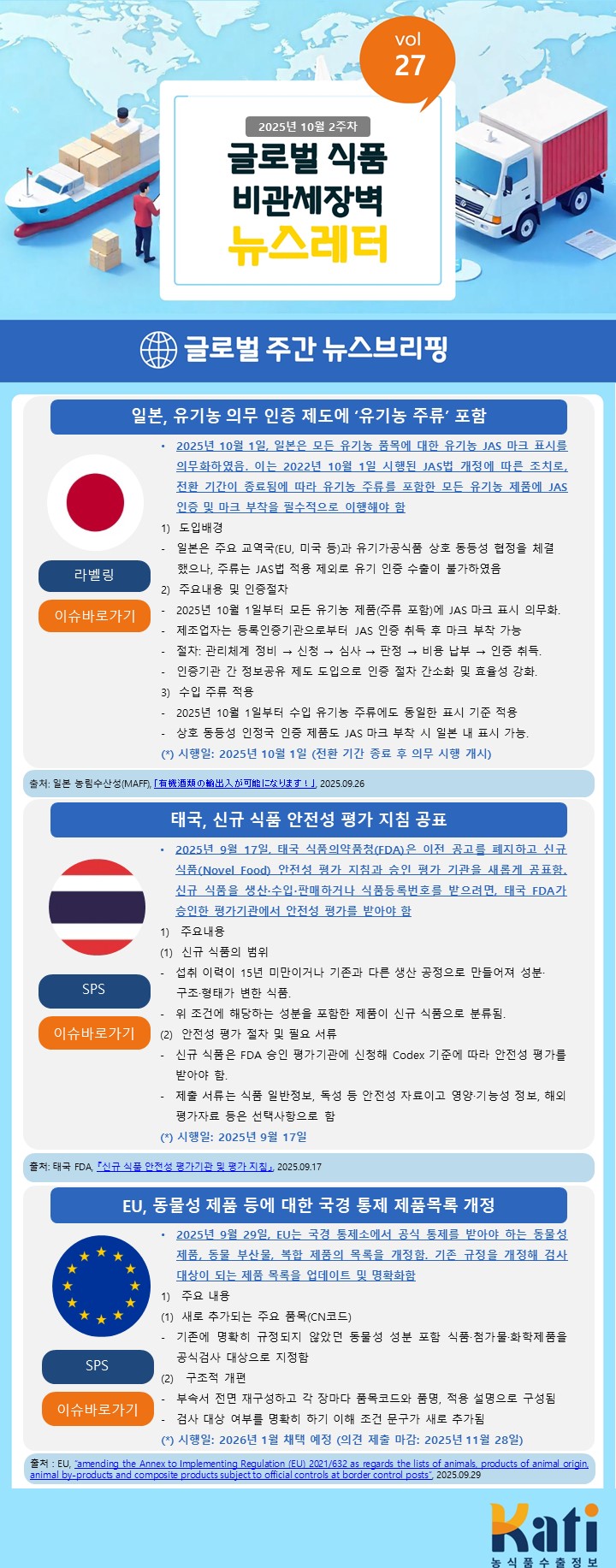 조회68110월 2주차 글로벌 식품 비관세장벽 뉴스레터