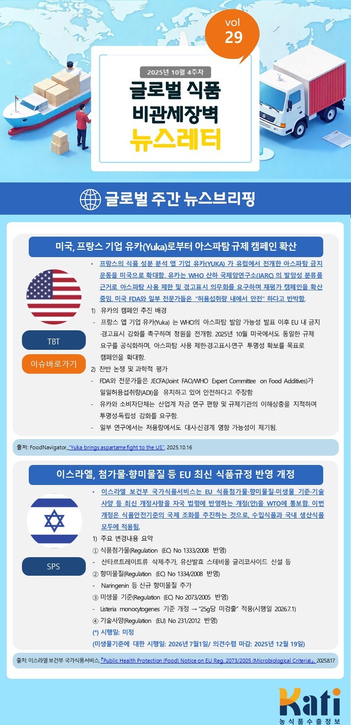 조회72810월 4주차 글로벌 식품 비관세장벽 뉴스레터