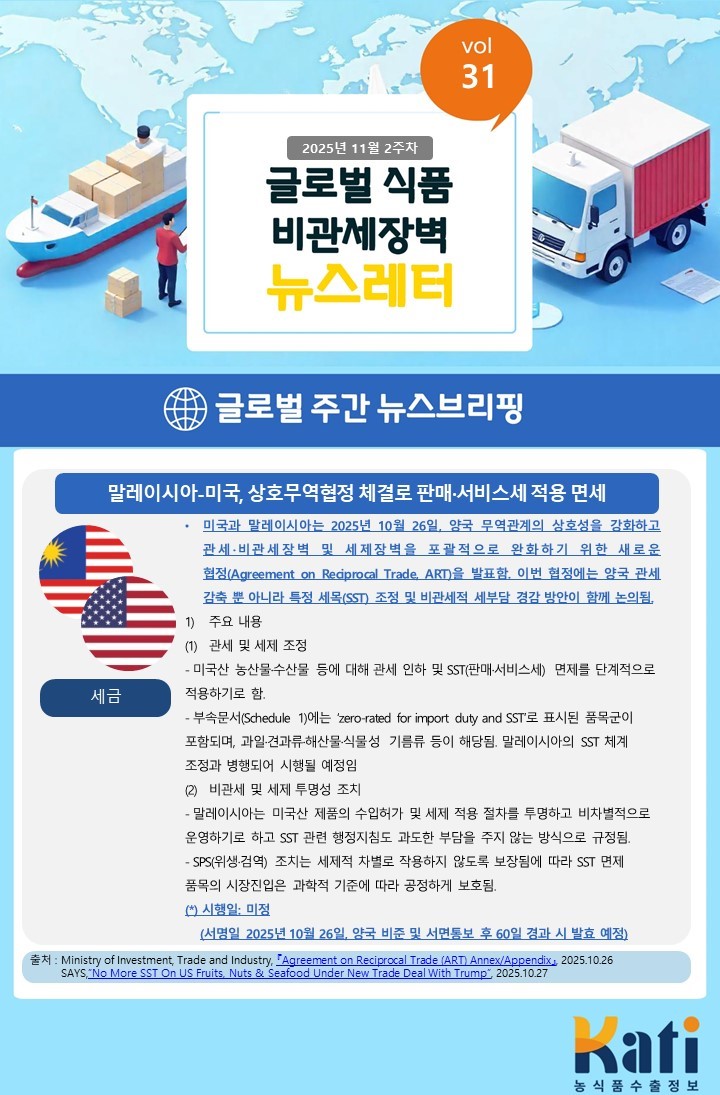 o 말레이시아-미국, 상호무역협정 체결로 판매·서비스세 적용 면세
